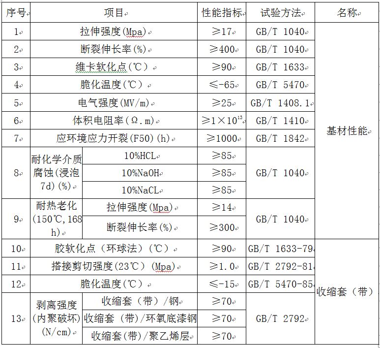 4.熱收縮套(帶)性能指標(biāo):